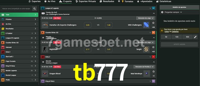 O tb777 oferece uma grande seleção de opções de apostas em e-sports com probabilidades competitivas